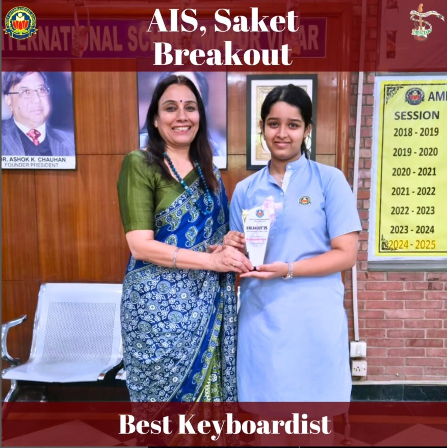 At the virtual edition of Breakout, the Western music Competition organised by AIS Saket, the aspiring musicians of AISMV made the school proud as they secured various prizes. Ayan Sharma secured the first position in the Drums Category followed by Karthik Suresh, Debaditya Halder and Shashwat Nagar securing the third position in the bass, keyboard and electric guitar category respectively. Last but not the least, AISMV also bagged the award for Best Composition in the Solo Singing category