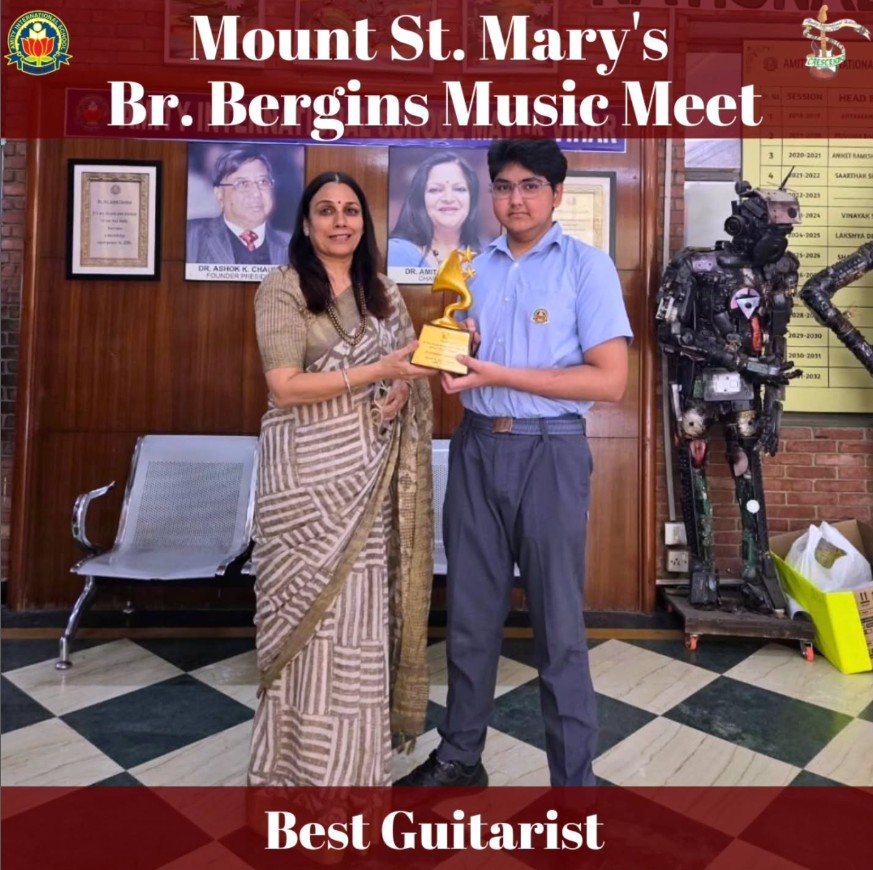 At this online competition organized by AIS Pushp Vihar, Debaditya halder of class 12 won the first position in both the keyboard and piano category, Shashwat Nagar of class 12 won the second position in the guitar category and Utkarsh Garg of class 11 secured the second position in the bass category. Their exceptional efforts reaped fantastic results.
